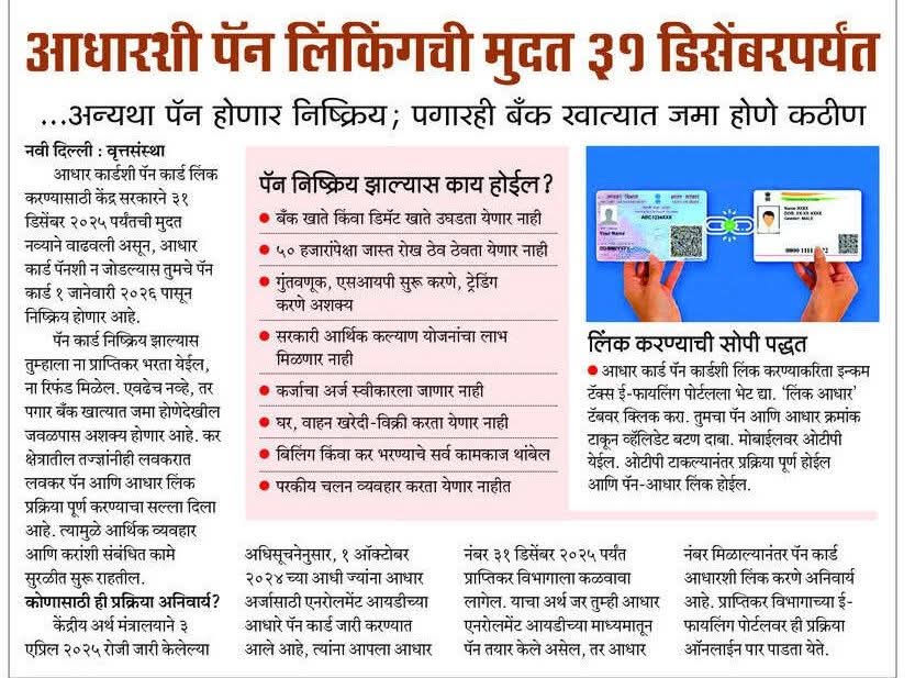 पॅन-आधार लिंकिंगची अंतिम मुदत: ३१ डिसेंबर २०२५